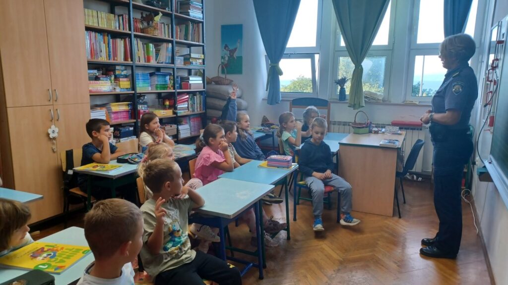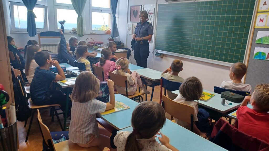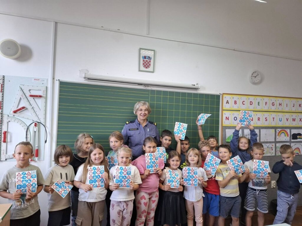 Učenici prvih razreda uz pomoć prometne policajke učili su o prometu i prometnoj sigurnosti. Naučili su kako je najvažnije biti OPREZAN. Čuvajte nas, najmlađe sudionike u prometu!